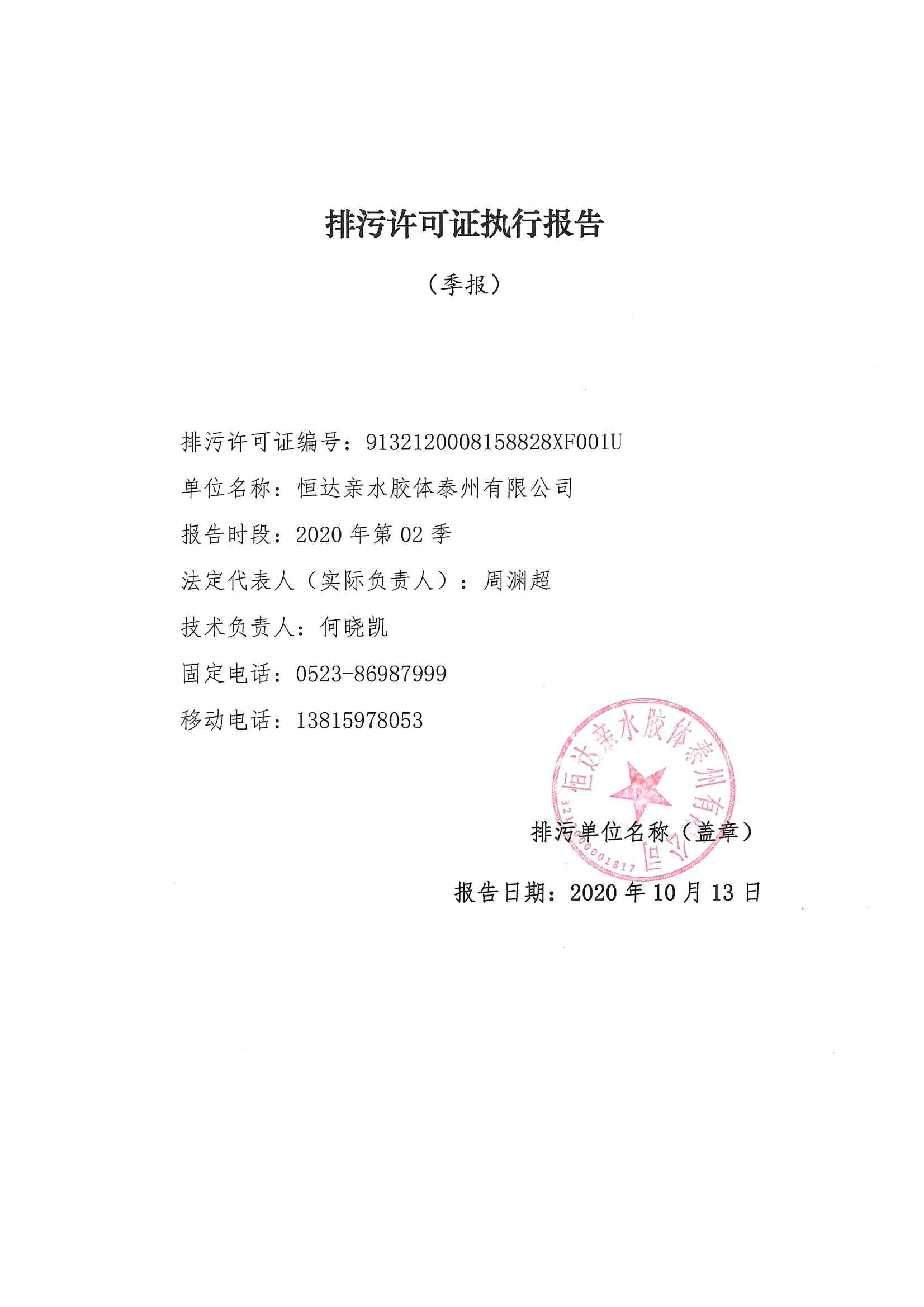 2020二季度排污許可執(zhí)行報告