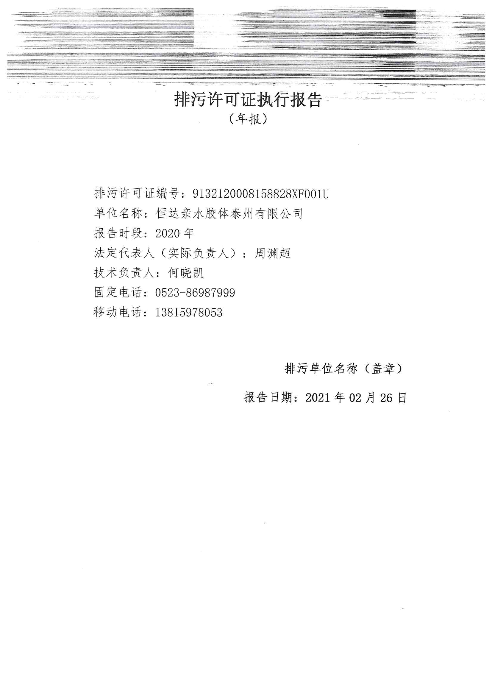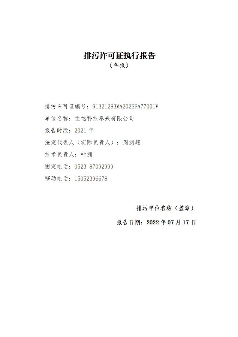 恒達科技泰興有限公司-2021年排污許可證執(zhí)行報告